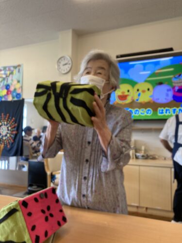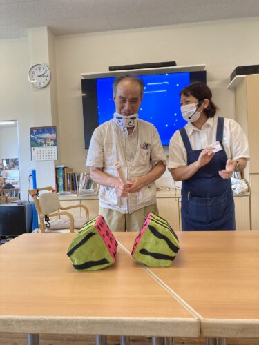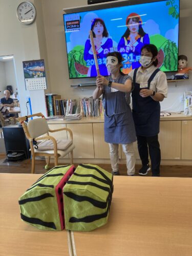 今月のイベント担当は、器用な看護師H。スイカ割りをしたい!!これで、、、とサンプルを作成。