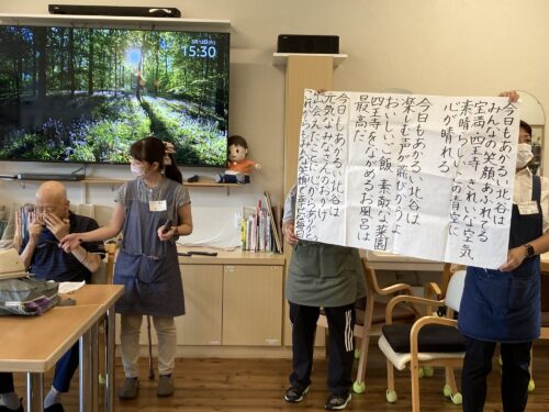 最後は、ご利用者様の素敵なハーモニカ演奏に合わせてデイサービス北谷ソングをみんなで熱唱しました(^^)