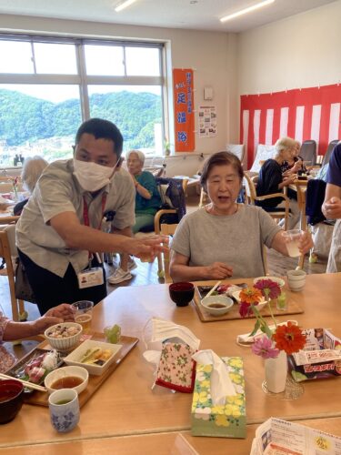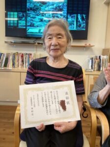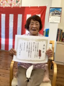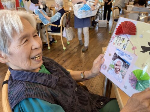 今年、米寿や卒寿の方に賞状を送り、みなさんには、スタッフから手作りの写真のプレゼント。そして、美味しいお祝い和菓子。