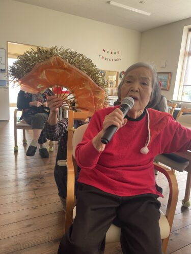 そうしてできた扇子を片手に、カラオケ大会スタート!!
